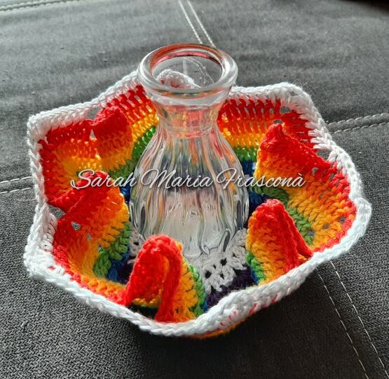 Verkauf, Tausch, Vervielfältigung und Veröffentlichung inkl. Übersetzungen der Anleitung (einschließlich Veröffentlichung im Internet), sind untersagt. Die Häkelanleitung selbst ist nur für den Privatgebrauch! Sie darf nicht kopiert oder gegen andere Anleitungen getauscht werden. Ein Verkauf der Anleitung, der enthaltenen Texte und Bilder sowie die Nutzung für gewerbliche Zwecke sind ebenfalls untersagt. Artikel, die mit Hilfe meiner Anleitung gefertigt werden, können in beliebiger Stückzahl gewerblich verkauft werden. Bitte mit dem Hinweis: „Nach einer Anleitung von Sarah Frascona oder dem Link zu dieser Anleitung.