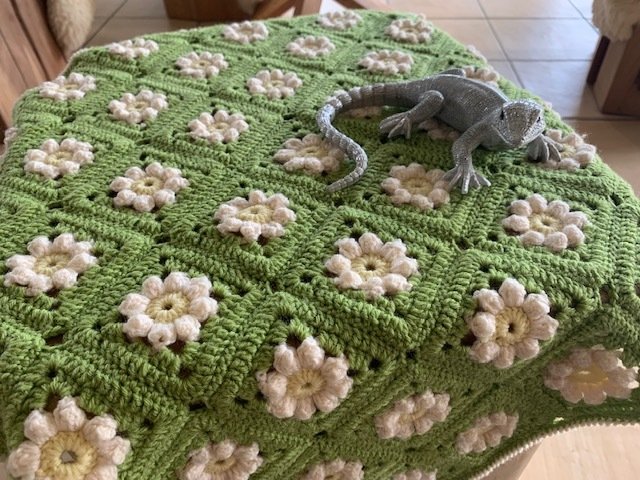 Die Decke ist natürlich auch fürs Sofa perfekt. Im Sommer vielleicht noch klein für die Knie und im Winter dann schon riesengroß zum Reinkuscheln.