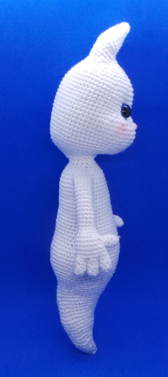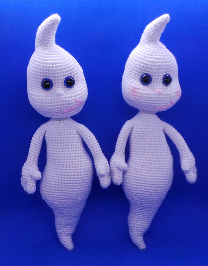 Mit einem Baumwollgarn 50g/170m und Häkelnadel 2,5mm gehäkelt wird das Gespenst etwa 28cm groß.Du kannst das Gespenst mit jedem anderen Garn/Wolle häkeln, mit entsprechender Nadelstärke für das von dir verwendete Garn/Wolle. Je nach dem, wie dick oder dünn dein Garn/Wolle ist und wie fest oder locker du häkelst wird die Figur kleiner oder größer ausfallen.