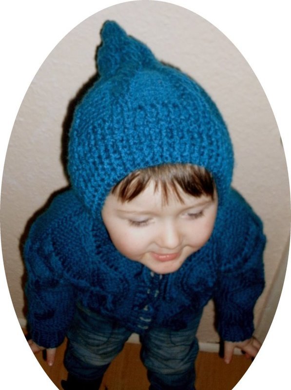 Diese schöne warme Jacke habe ich für unseren Zwerg gehäkelt, was liegt da näher als die Mütze auch in Zwergenoptik zu gestallten :D