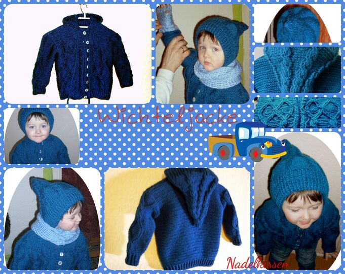 Die Jacke ist in Größe 98/ 104 gearbeitet- mit Tipps um sie zu verkleinern oder zu vergrößern.