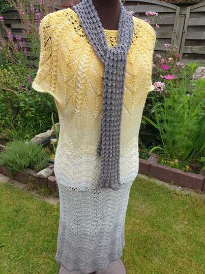 Das schöne an dieser Strickart ist, das es für alle Größen geeignet und auch erweiterbar ist. So ist aus meiner Idee nicht nur ein Shirt entstanden sondern auch ein schlichtes aber absolut ausgangsfähiges Sommerkleid!