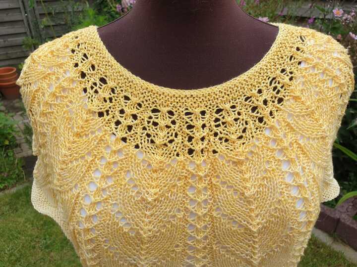 Das Shirt war schön zu stricken. Die Anleitung ist verständlich geschrieben. Den Abschluss habe ich etwas abgewandelt, weil mir das besser gefiel.