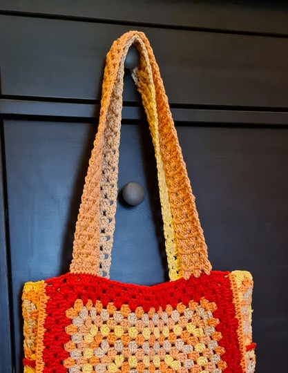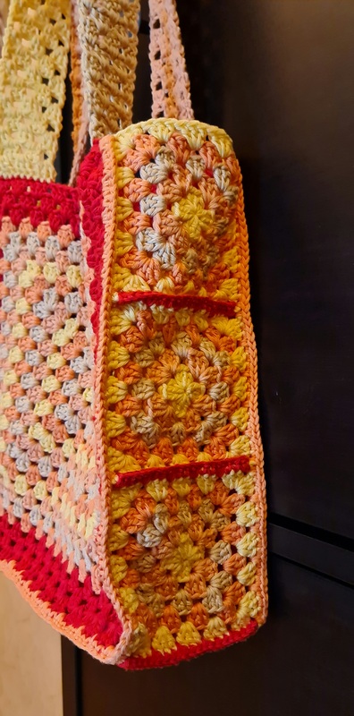 Diese wunderschöne Einkaufstasche aus hochwertiger 100 % Baumwolle ist eine tolle Shoppingbegleitung. Das Granny Square Muster ist zeitlos.