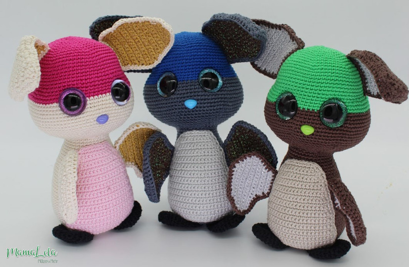 Nein, darauf hatte ich keine Lust. Also machte ich mir Gedanken darüber, was zeitlos ist und dennoch irgendwie in die trübe Jahreszeit passt. So kam mir die Idee zur etwas anderen Fledermaus. Nicht wie gewohnt große Flügel, kleine Ohren - nein, genau andersherum musste es werden. So entstand Fipsi!