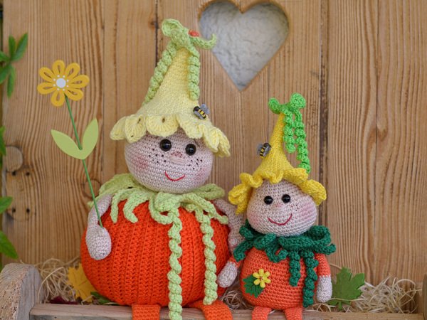 Mit dieser Häkelanleitung zeige ich dir, wie du dir den großen Kantenhocker Kürbis Karlchen und seinen kleinen Bruder häkeln kannst.