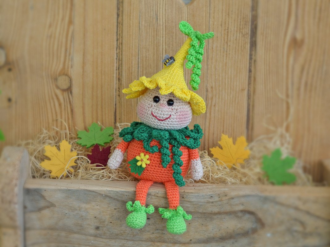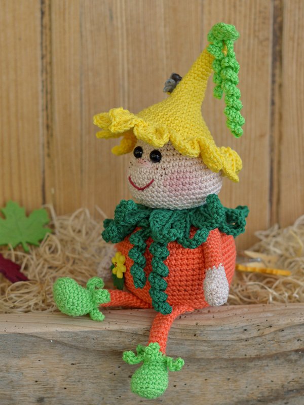Mit dieser Häkelanleitung zeige ich dir, wie du dir den kleinen Bruder von Kantenhocker "Kürbis Karlchen" häkeln kannst.