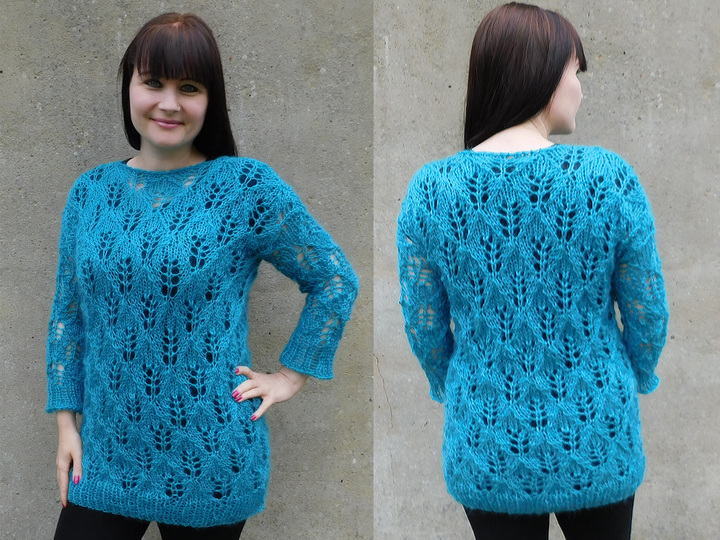 Der Pulli besteht aus einem schlichten Rippenbündchen und aus einem wunderschönen und verspielten Lacemuster.