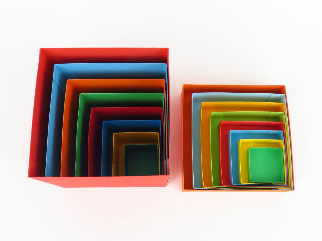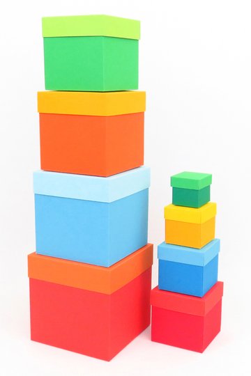 Große Schachteln sind ca. 7 x 7 cm, 8 x 8 cm, 9 x 9 cm und 10 x 10 cm groß