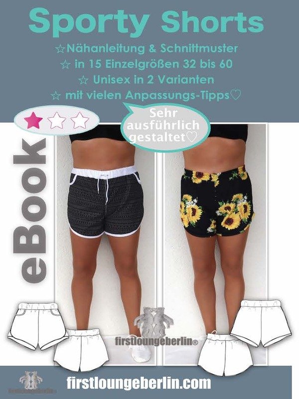 ♥♥ Sporty Shorts. Diese Hose ist so vielseitig tragbar, dass man es nicht aufzählen kann. Egal ob zum Sport oder in der Freizeit, egal ob Strick oder Jeans, Sweat, oder Jersey. Ob als Schlafbuxe oder Turnhose, hier ist wirklich alles möglich, ob mit oder ohne Taschen. Genauso variabel sind die Stoffe, die man verwenden kann. Hier ist es egal ob der Stoff dehnbar ist oder nicht dehnbar ist, nur in der Weite liegt der Unterschied. Tipps um die Hose nach eigenen Wünschen anzupassen gibt es als Bonus noch dazu. Die Anleitung ist wie bei allen firstloungeberlin eBooks sehr ausführlich in Bild und Schrift und ganz ehrlich Schritt für Schritt erklärt. Anfänger können nach einer vollständigen Nähprobe sich ihre Lieblingshose gestalten, anpassen, ändern und dann ganz einfach nachnähen.♥♥