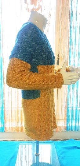 Ein sportlich eleganter Herrentpulli, gerade recht für den Herbst mit raffiniertem Zopfmuster vorne und an den Ärmeln.