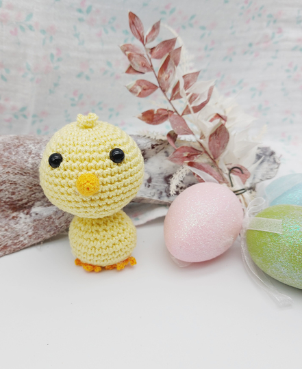 Mit dieser ausführlichen Anleitung könnt ihr euch ganz einfach selber eine süße Küken häkeln. Mit vielen Bildern detailliert erklärt.