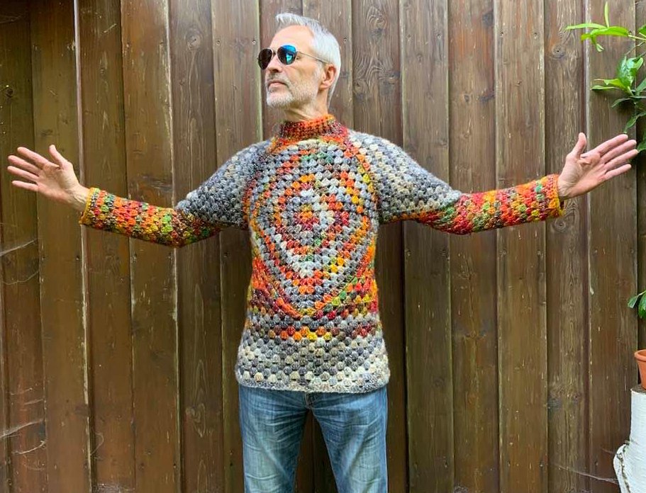 Der Pullover aus Grannysquare ist prima für Frauen & Männer