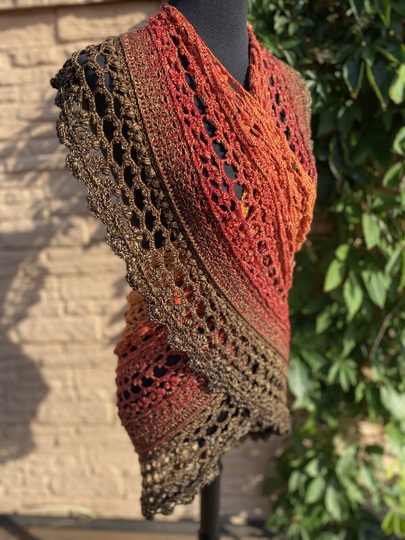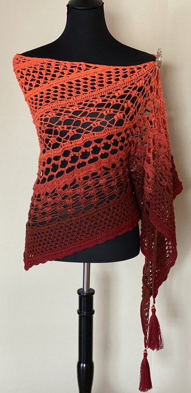 Die wechselnden Reihen und die Zunahmen in der Mitte des Tuches sind farblich deutlich voneinander abgehoben.