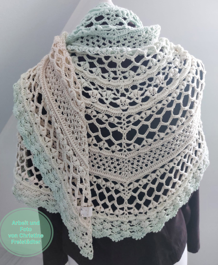 Bitte denke daran, dass die Größe des jeweiligen Tuches auch immer sehr stark von deinem Häkelstil abhängt und es daher Abweichungen geben kann.