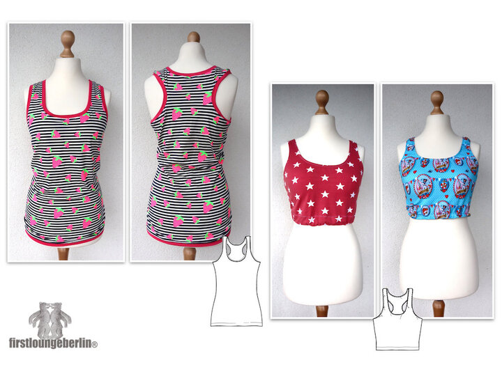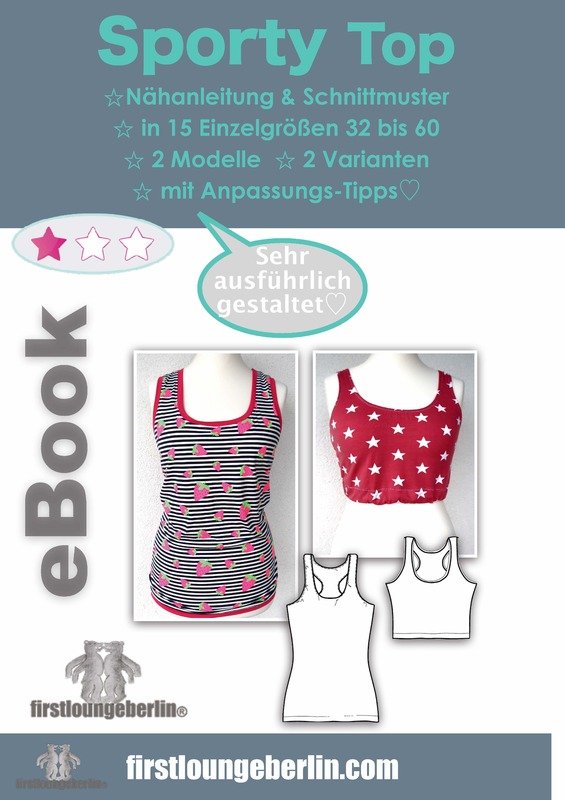 ♥♥ Zu den Sporty Shorts gibt es jetzt auch das passende Sporty Top. Das Top gibt es in 2 Längen und 2 Nähvarianten, mit Wäschegummi oder feinem Bündchen abgesetzt. Egal ob zum Sport oder in der Freizeit, egal ob Jersey oder Microfasermix, Pannesamt oder feiner Strick, hier ist wirklich vieles möglich. Tipps um das Top nach eigenen Wünschen anzupassen gibt es als Bonus auch dazu. Die Anleitung ist wie bei allen firstloungeberlin eBooks sehr ausführlich in Bild und Schrift und ganz ehrlich Schritt für Schritt erklärt. Anfänger können sich nach einer vollständigen Nähprobe ihr Lieblingstop gestalten, anpassen, ändern und dann ganz einfach nachnähen.♥♥