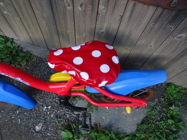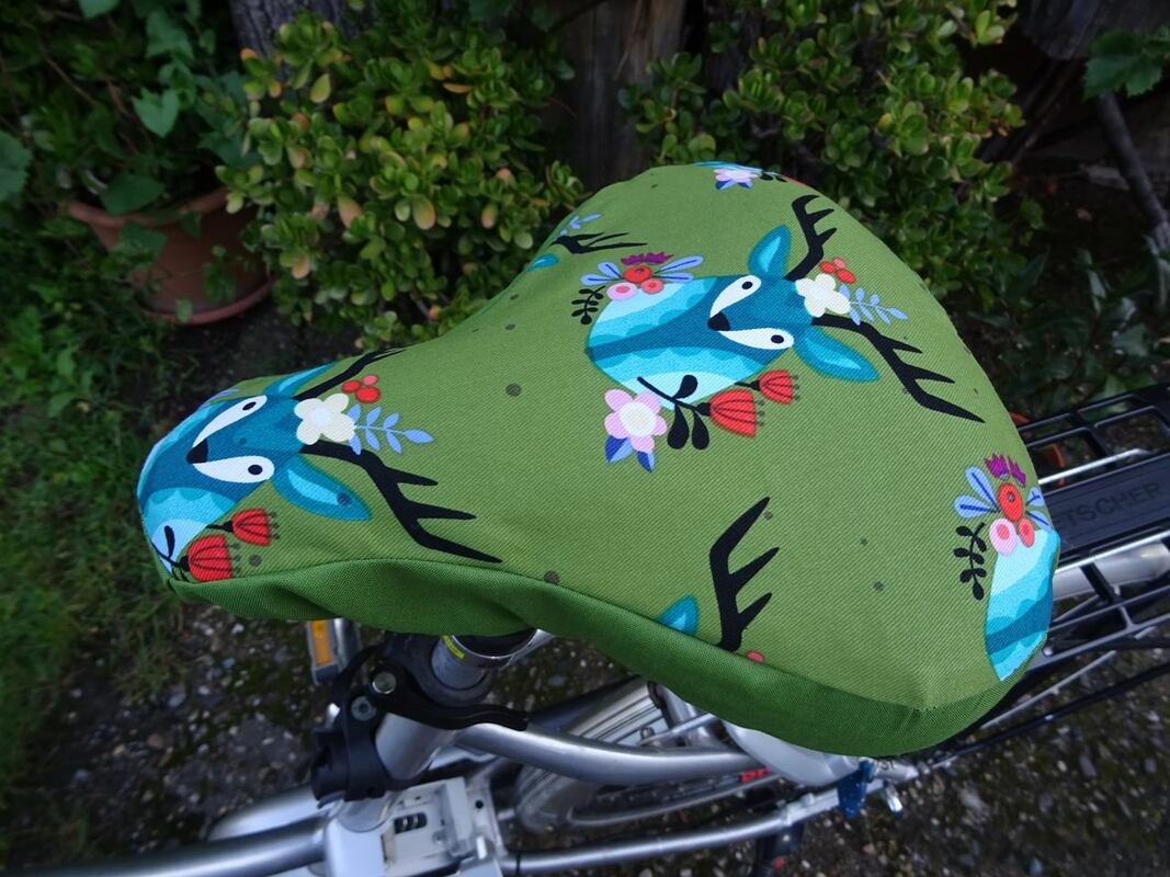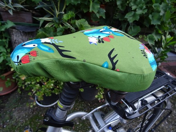 Ein Sattelbezug aus beschichtetem Baumwollstoff als Regenschutz genäht, aus Baumwollstoff als süße Deko oder für ein aus Alt mach Neu Projekt wenn der originale Sattel nicht mehr so schön aussieht.