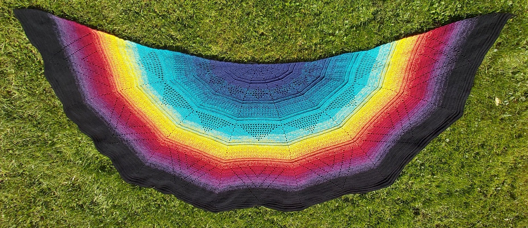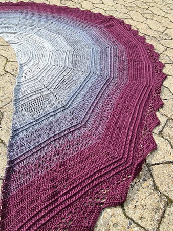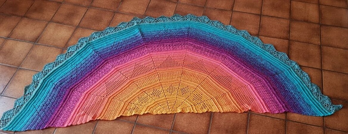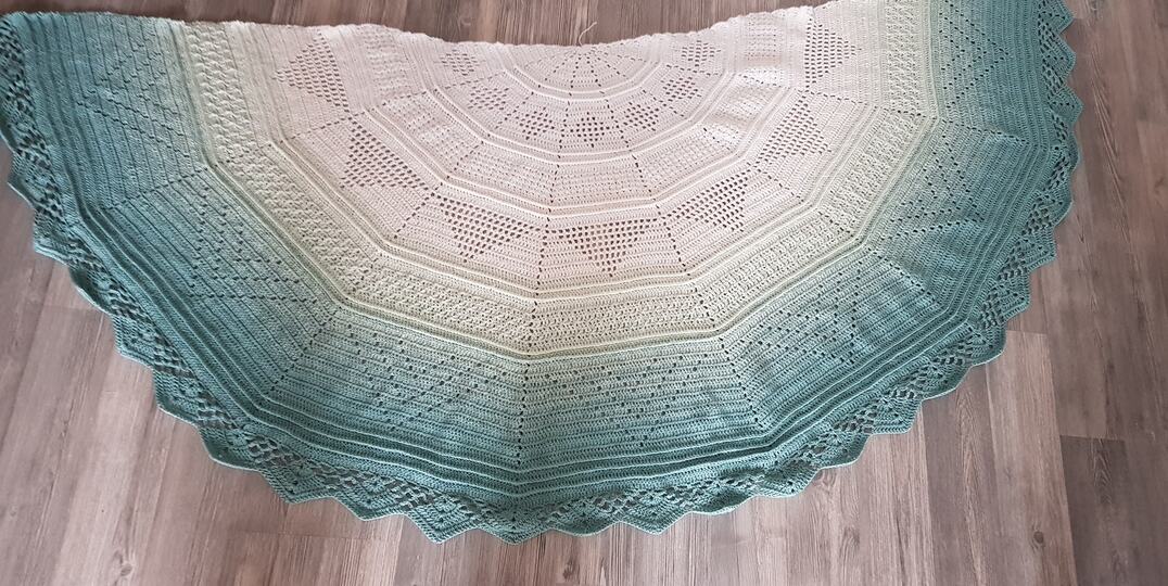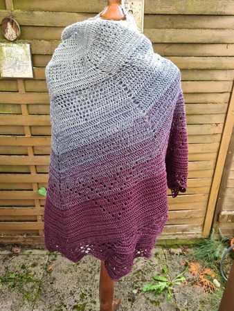 Um den Zeitpunkt des "Beltane" Festes kam mir die Idee zu diesem kuscheligen Tuch, welches leicht zu arbeiten ist. Durch die halbrunde Form kann man sich wunderbar in das Tuch einwickeln und auch der untere Rücken bleibt warm geschützt.