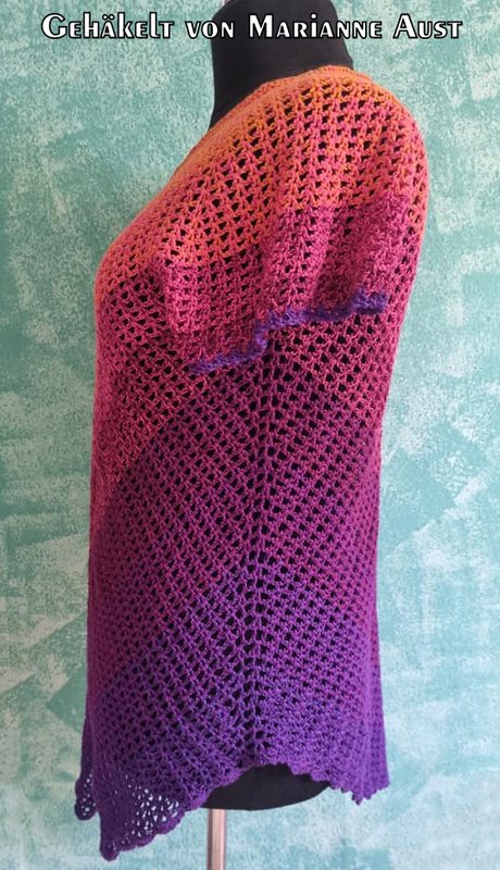 Ja, die Tunika wird als RVO von oben nach unten gehäkelt.