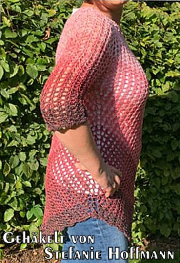 Die Tunika kann von Größe XS bis XXXL problemlos nachgearbeitet werden. Der Garnverbrauch ist dabei anzupassen.