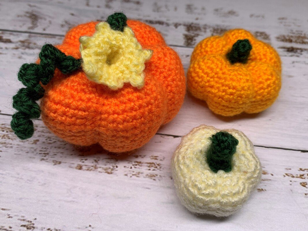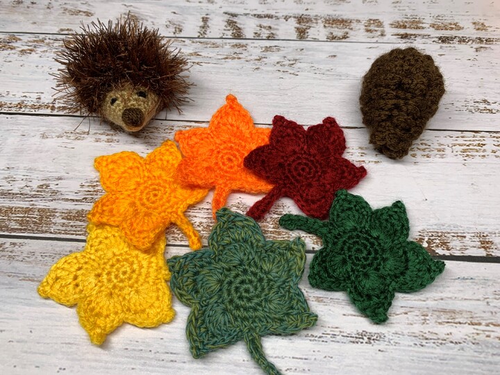 Wenn die in der Anleitung beschriebene Wolle verwendet wird, haben die einzelnen Herbstdekorationen folgende Größen: