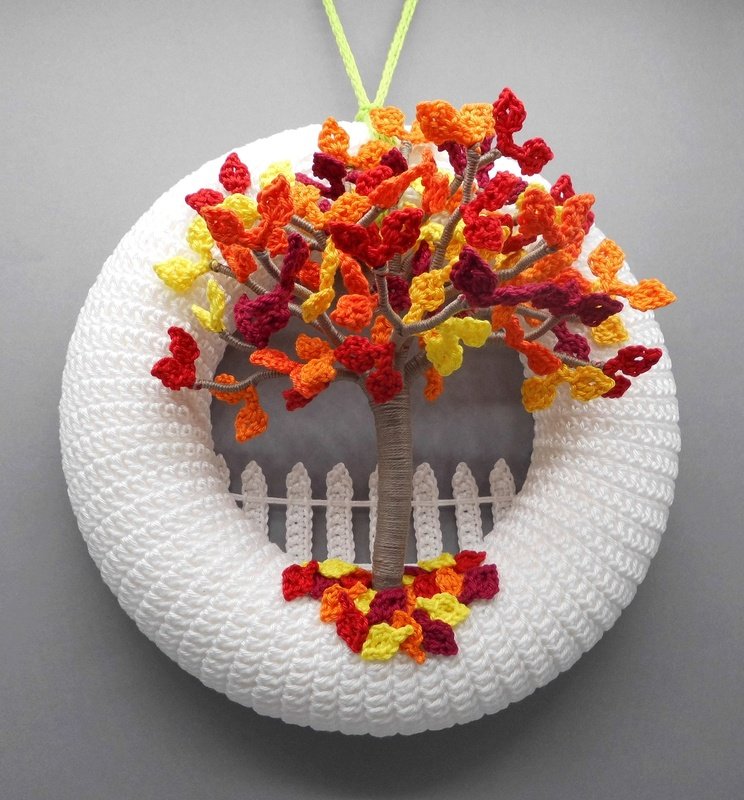 Die ausführliche PDF-Datei umfasst neben der schriftlichen Häkelanleitung auch die Häkelschriften und ganz viele, detaillierte Schritt-für-Schritt-Fotos für die Fertigstellung, damit Du diesen Herbstbaum-Kranz ganz einfach erfolgreich nachmachen kannst.