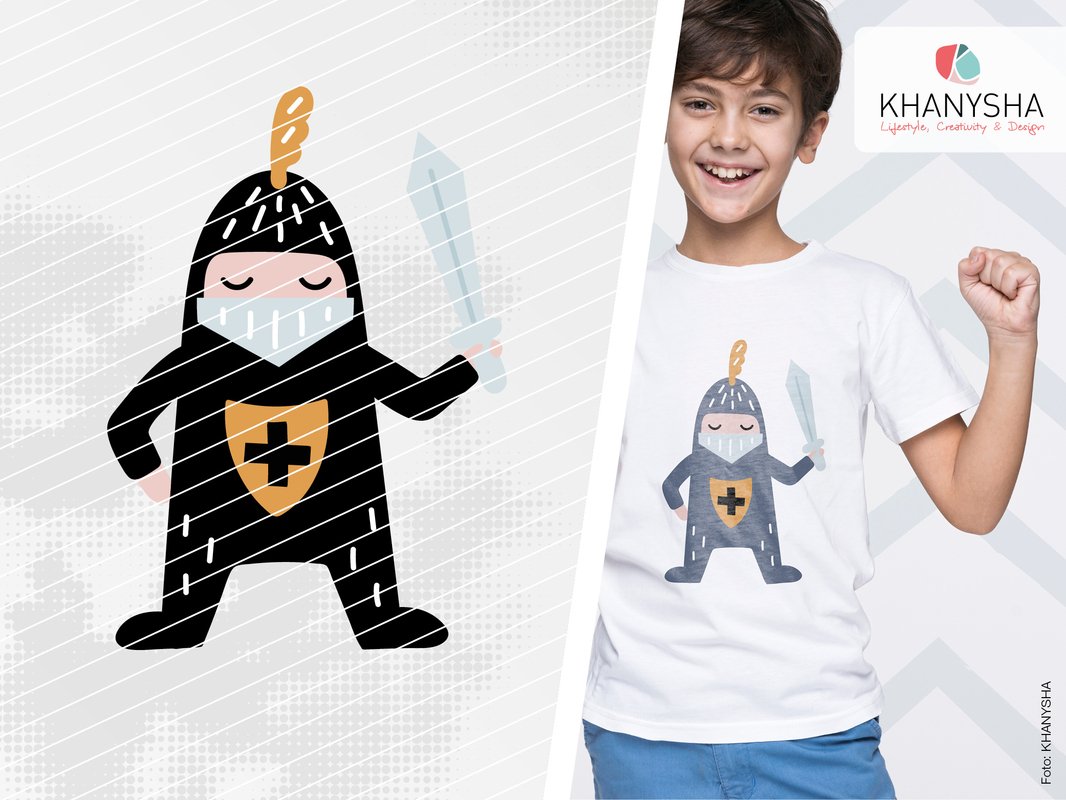 Ein kleiner knuffiger Ritter, im skandinavischen Stil.