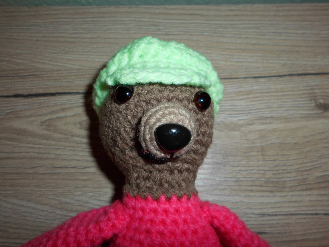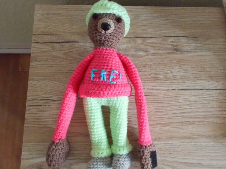 Bärli ist normal 27 cm groß, mit erhobenen Armen ca. 35 cm