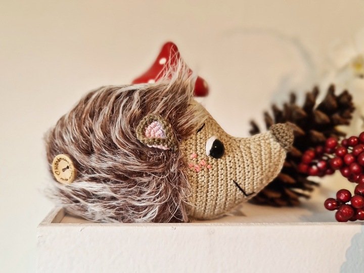 Mit angegebenen Garnen wird das kleine Igelchen ca. 10 cm hoch - 18 cm lang.