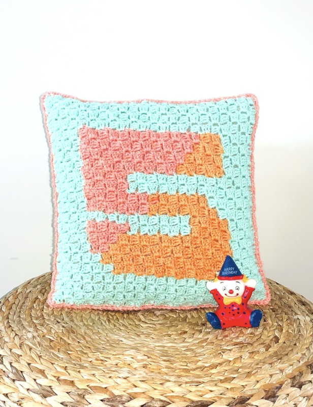 Mit dieser Häkelanleitung erhälst du ein Kissenbezug mit der Zahl 5.