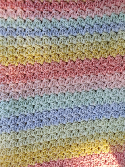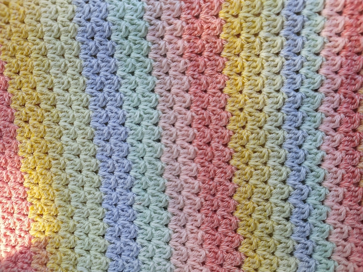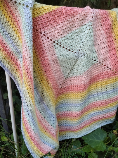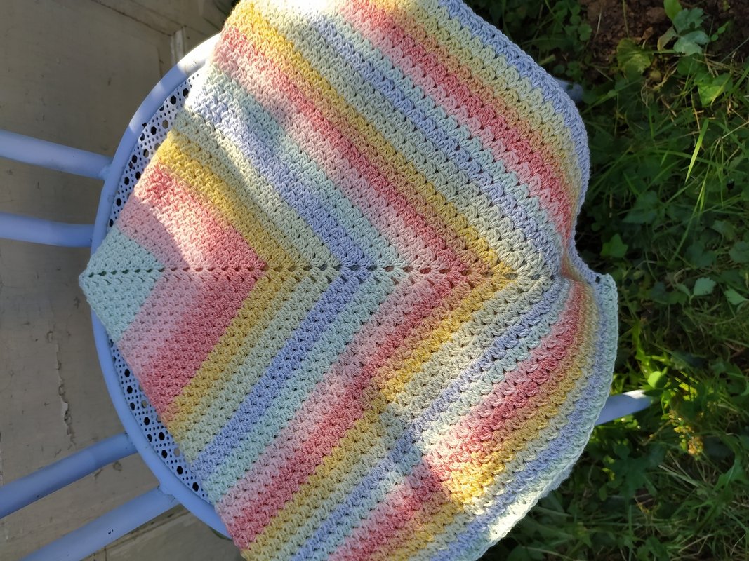 Egal ob ein Verlaufsgarn, ein Bobbel oder unterschiedliche Farben von einem Garn, mit dieser Anleitung kann man eine tolle bunte Decke für den neuen Erdenbürger einfach nachhäkeln.