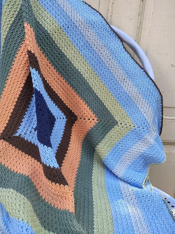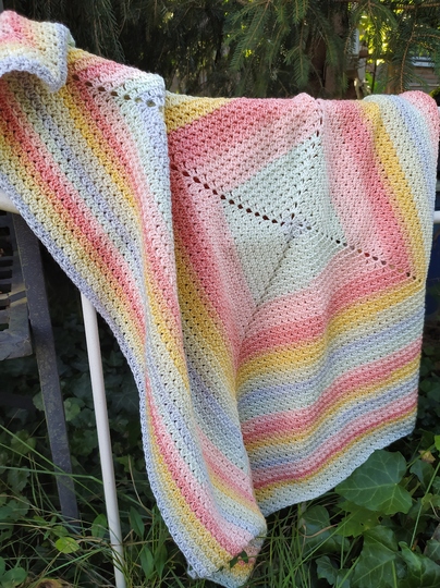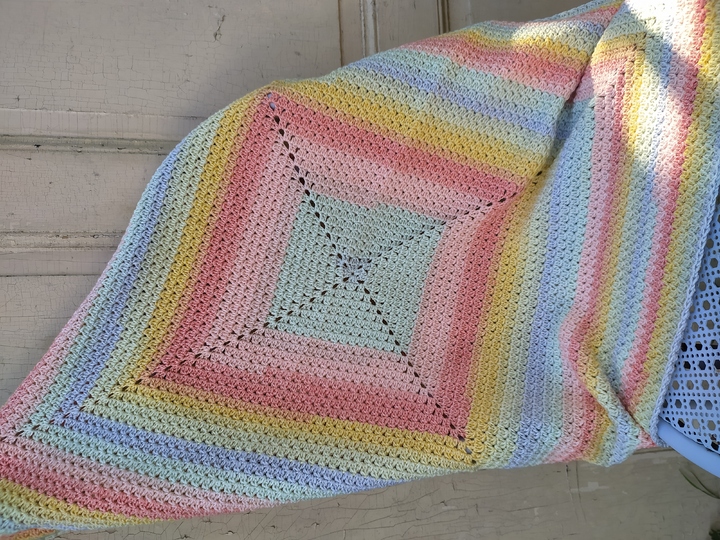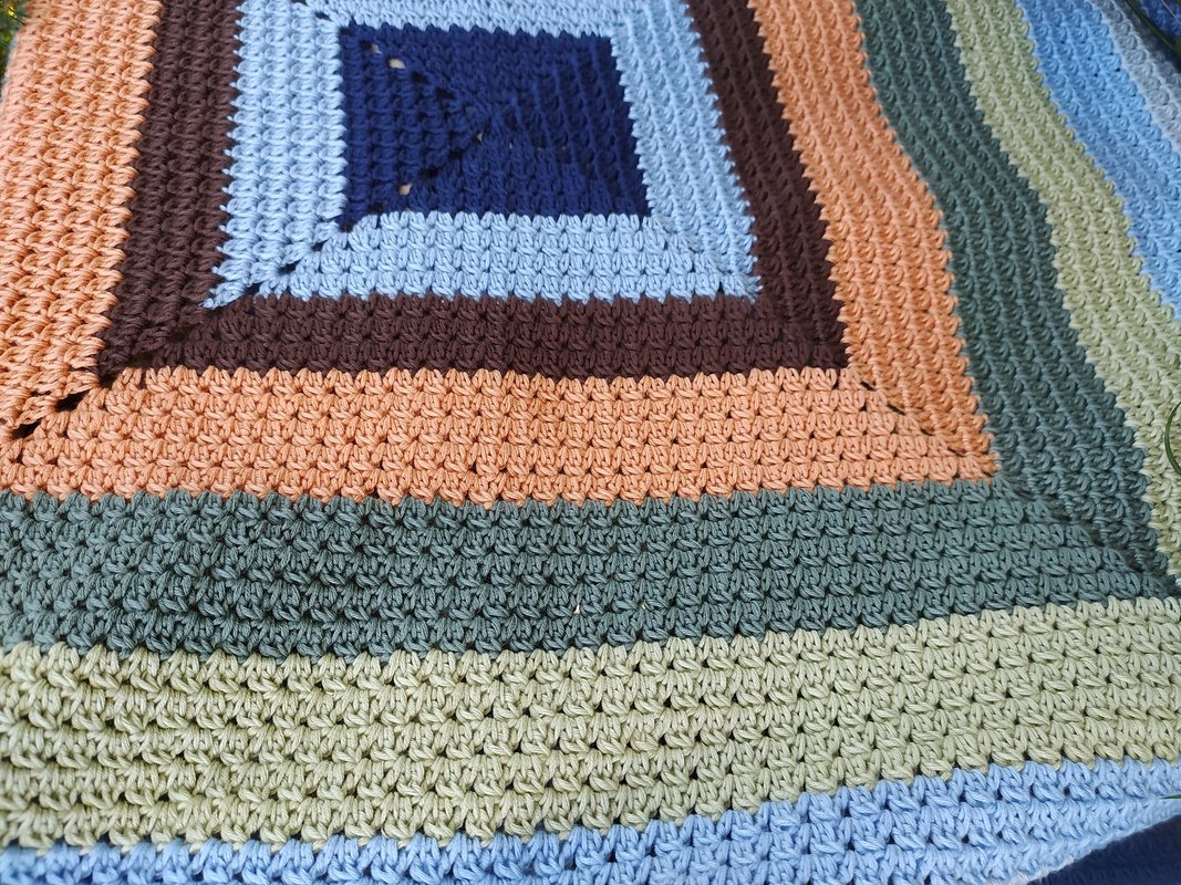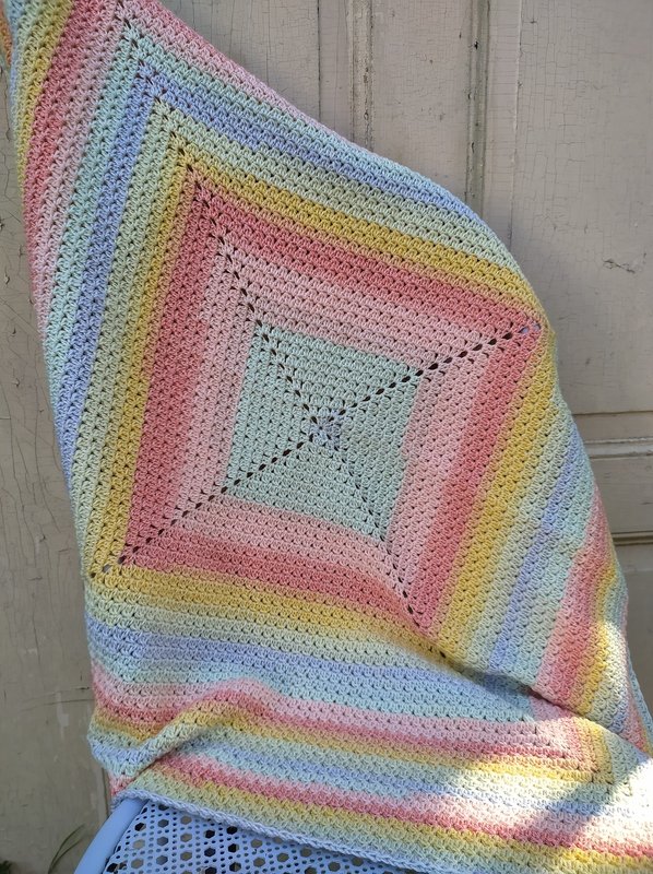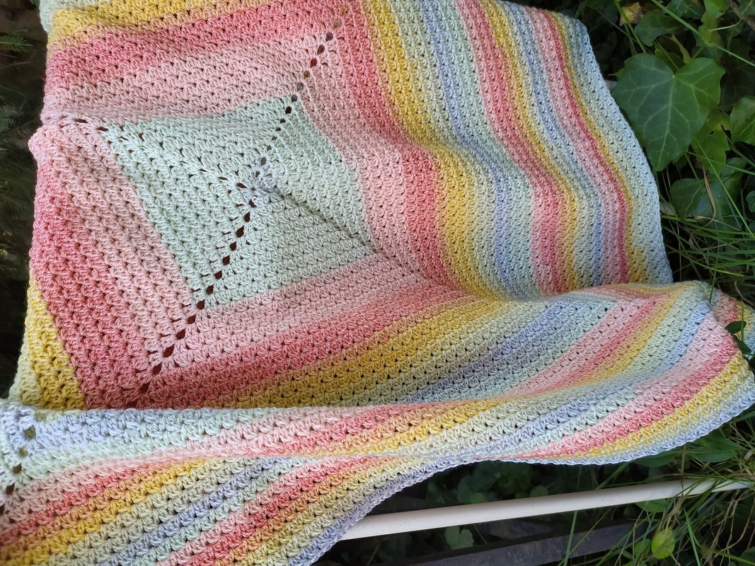 Meine Decke hatte hier eine Größe von 77 x 77 cmMeine Anleitung beinhaltet keinen Grundkurs in Häkeln