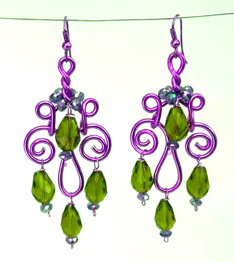 und grünen Glastropfen mit lila Perlchen