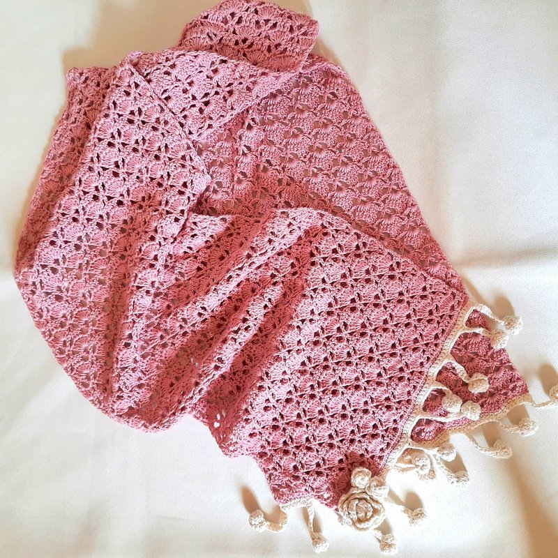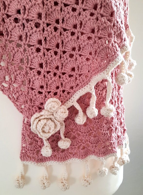 Details wie die Röschen oder die verspielte Kante können, je nach Geschmack, mit gehäkelt oder weggelassen werden.
