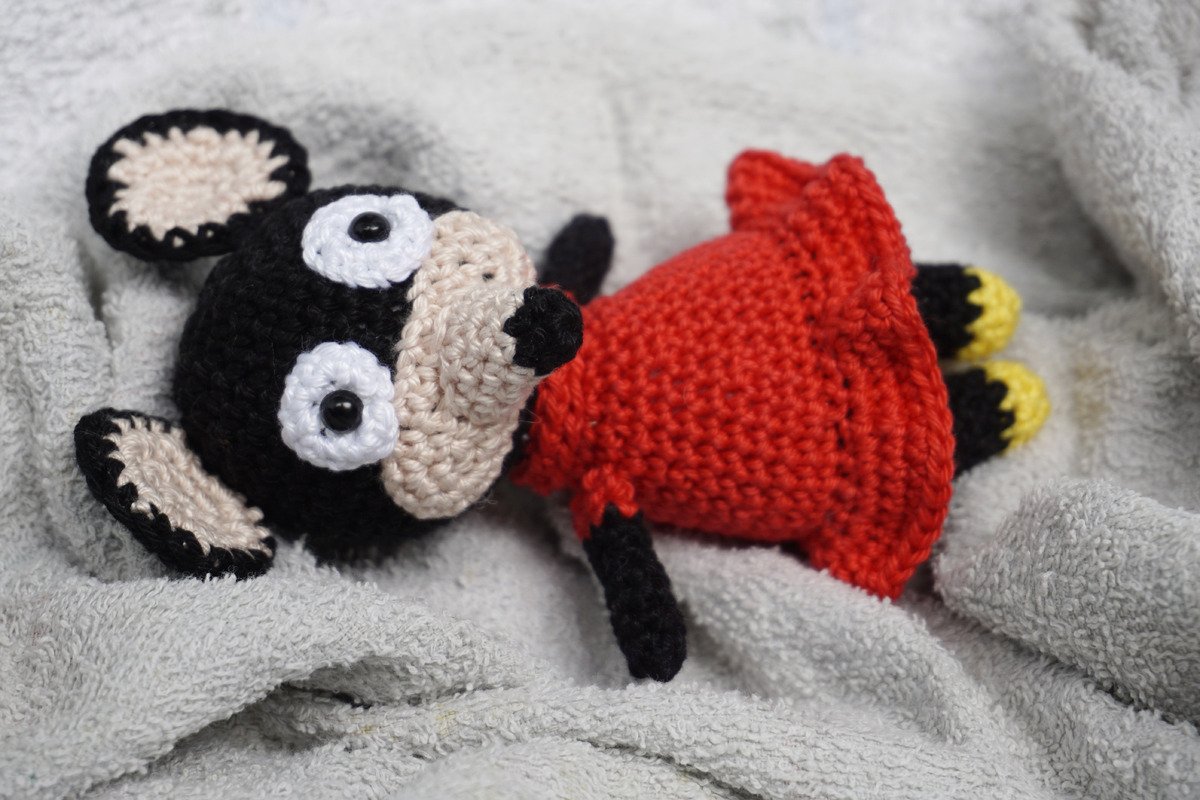 Sie hat große Ohren, eine spitze Nase und ein freundliches Lächeln. Du brauchst nur etwas Wolle, eine Häkelnadel, Füllwatte und Sicherheitsaugen.