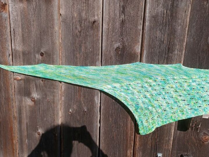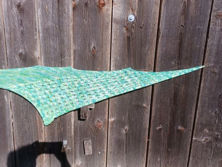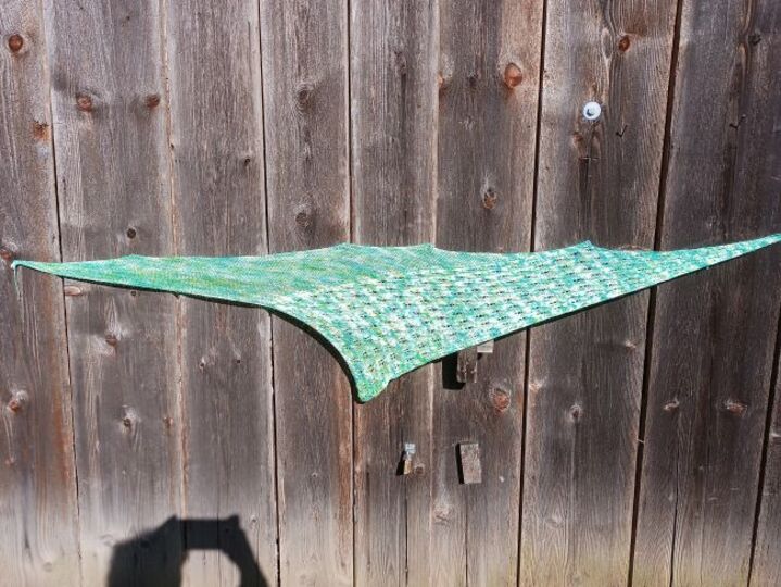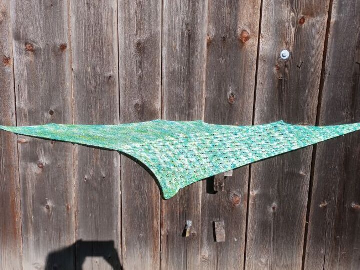 Mein Tuch besitzt eine Breit von 160 cm und eine Höhe von 450 cm. Verarbeitet wurde ein Tuchgarn mit 420 m Lauflänge.