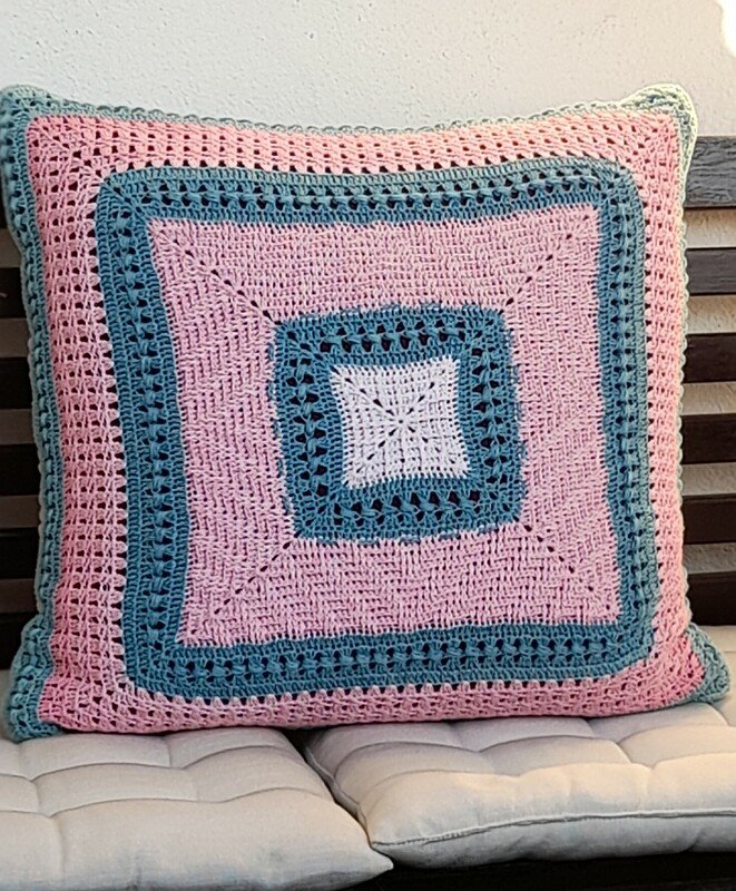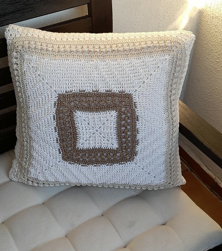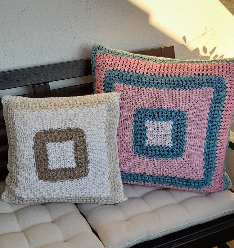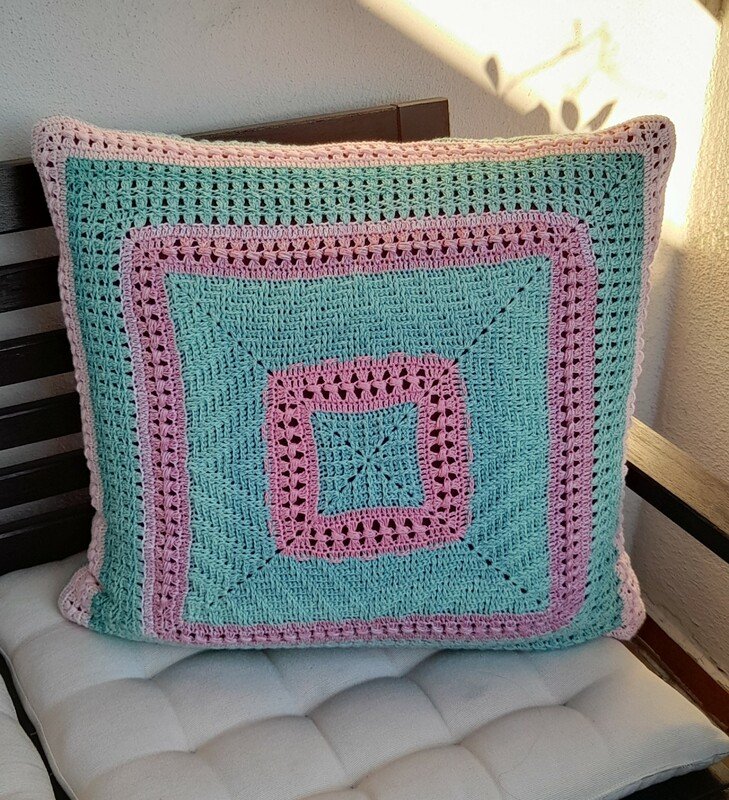 Die Anleitung ist für ein Kissen von 50x50cm ausgelegt, kann aber auch kleiner z.B. 40x40cm gearbeitet werden.