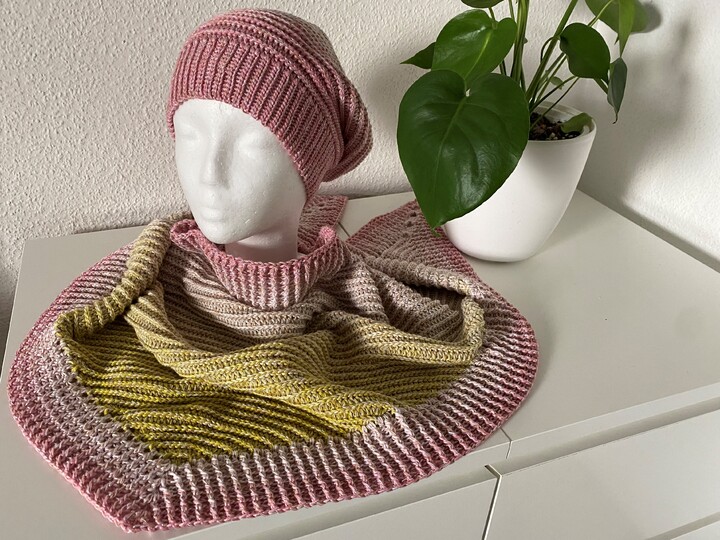 Das Häkelset Lomi besteht aus einer Mützen- und Tuchanleitung. Beides wurde in einem wunderschönen, schlichten Wendemuster gearbeitet. Ihr könnt die beiden Teile nach belieben wenden, denn das Muster ist auf beiden Seiten so hübsch, dass ich mich kaum entscheiden konnte, welche Seite die "Hauptseite" weden sollte.