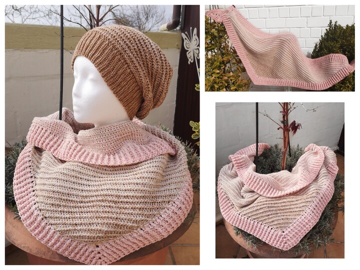 Die Mütze und das Tuch können in jeder beliebigen Größe gehäkelt werden.