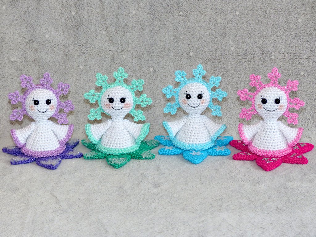 Ich beschreibe euch in der Anleitung wie das Schneeflöckchen und die Schneeblume gehäkelt werden.