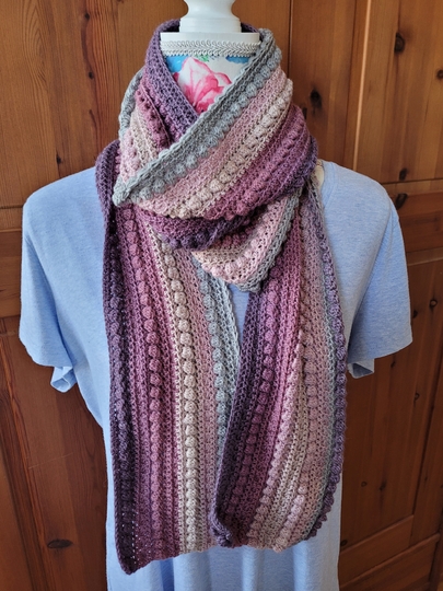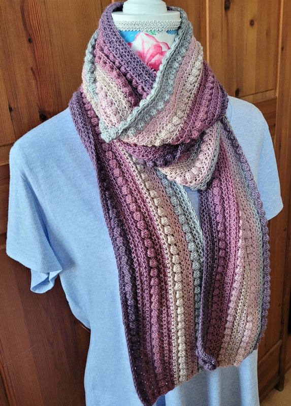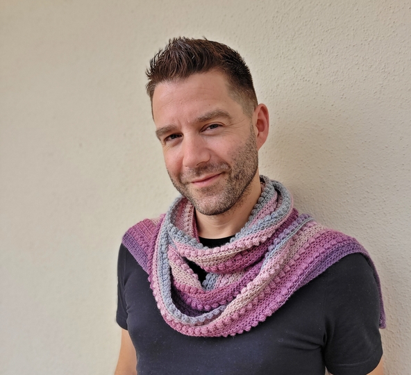 Aus einem Farbverlaufsbobbel wird dieser Schal quer gehäkelt.