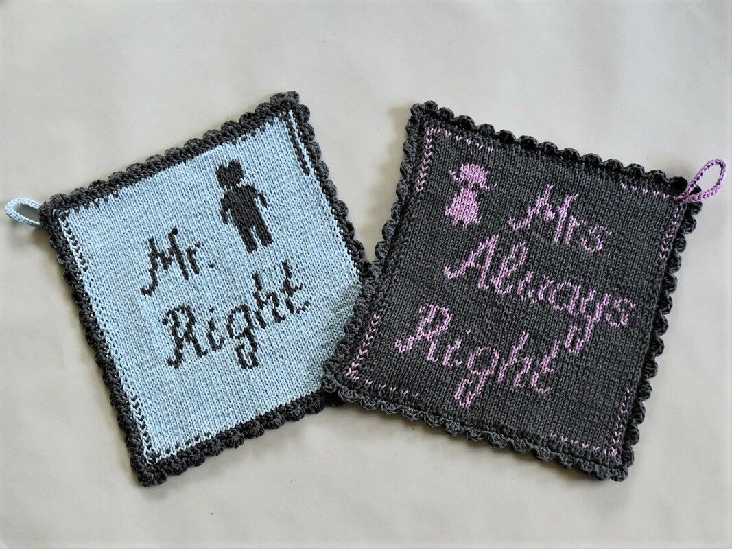 Die Topflappen werden in Doubleface gestrickt. Eine ausführliche Anleitung für die Doubleface Grundlagen ist enthalten. Beim klassischen Doubleface erscheint die Schrift auf einer Seite spiegelverkehrt. In dieser Anleitung ist zusätzlich eine ausführliche Erklärung inklusive farblich markiertem Strickschema enthalten, wie Du die Schrift auf beiden Seiten richtig herum stricken kannst. Das braucht ein bisschen Konzentration an den betroffenen Stellen, aber der Effekt ist die Mühe allemal wert!
