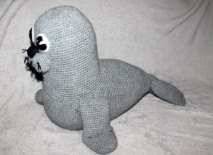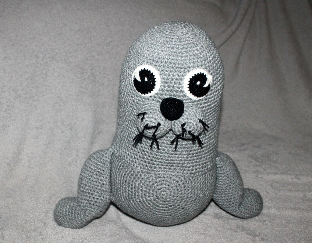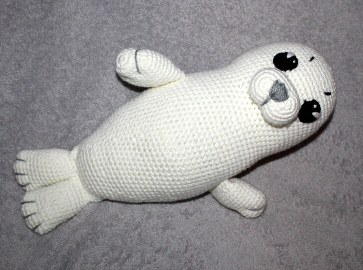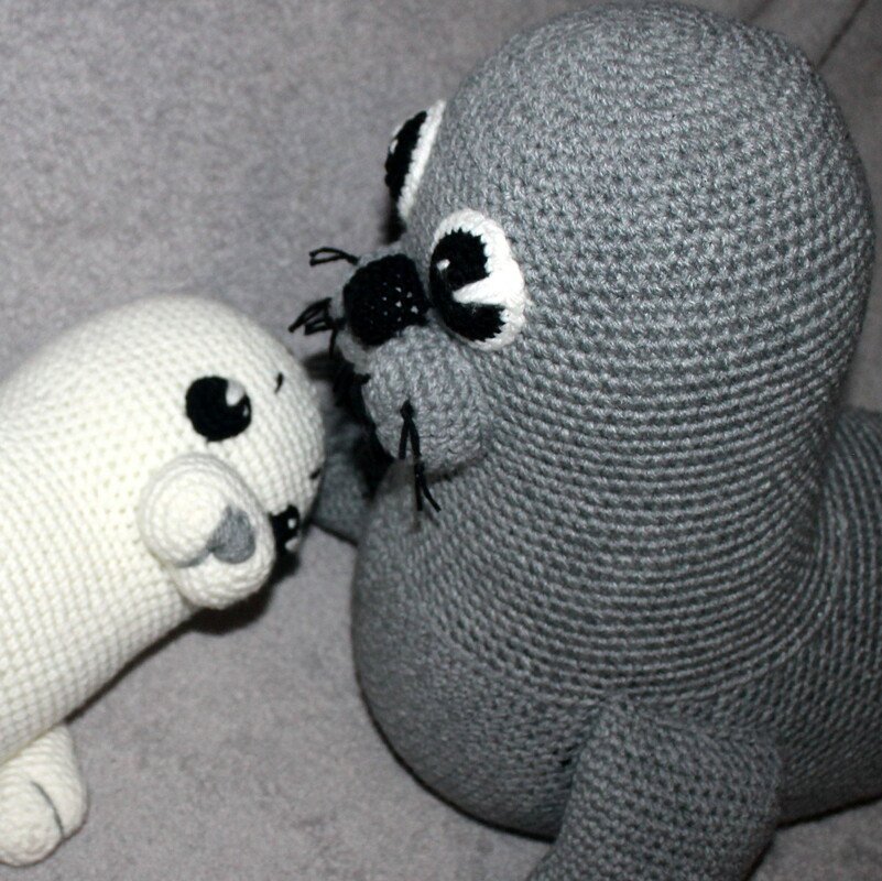 Mit dieser Häkelanleitung könnt Ihr Betty die graue Robbe, die zusammen mit Ihrem Baby Betty kommt, nachhäkeln.