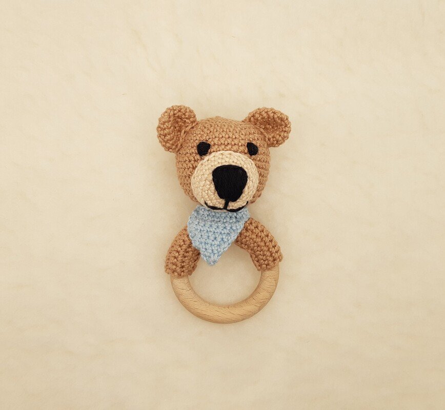 Die süße Babyrassel kannst du mit Hilfe dieser Anleitung selbst häkeln.