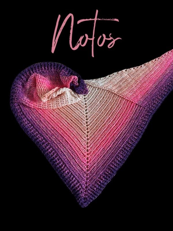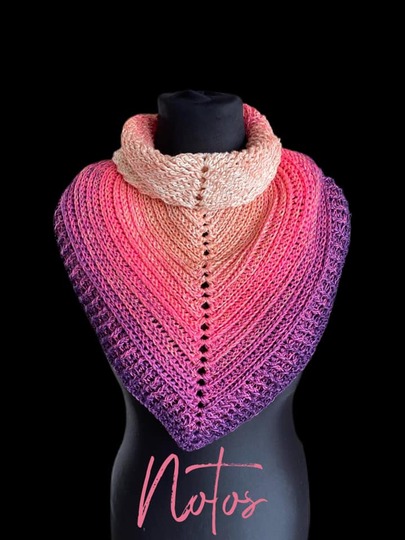 Durch sein markantes Design erinnert das kuschlige Dreiecktstuch an den Südwind Notos, der die Tuchreihen umwirbelt. Perfekt für die Herbst- und Wintersaison.