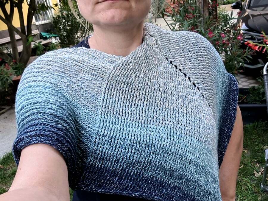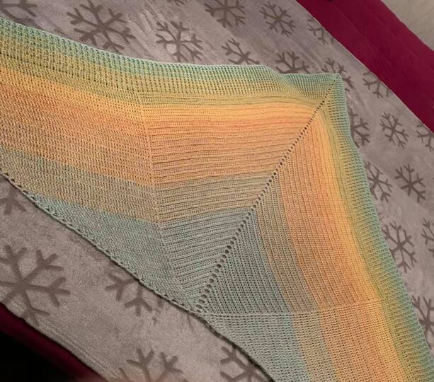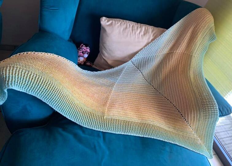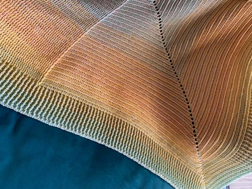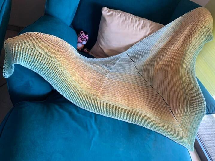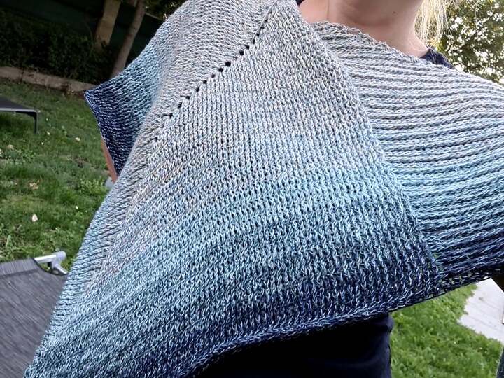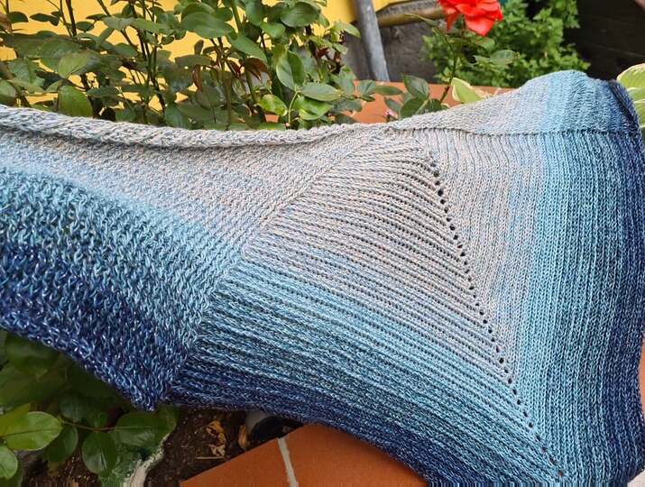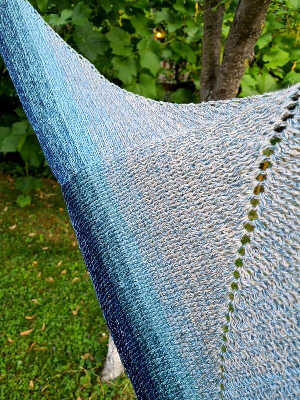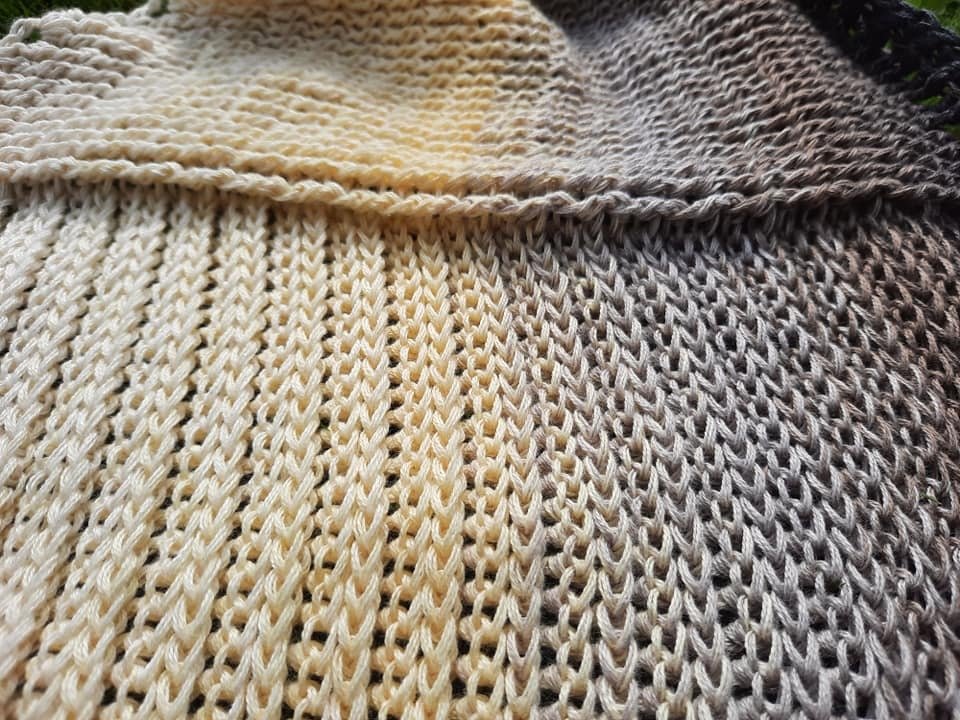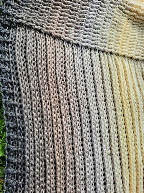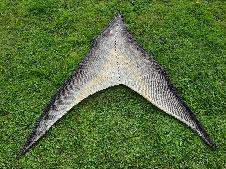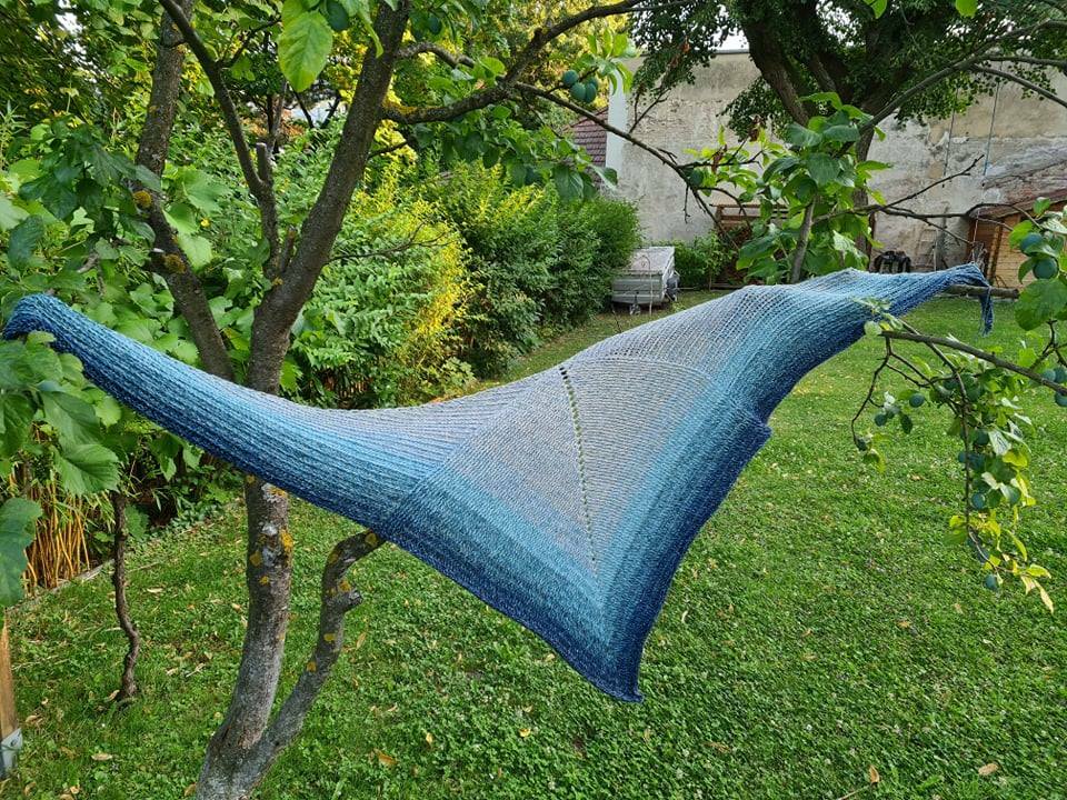 Mein Tuch ist bei einem Verbrauch von 600/5m mit NS 5.0 ca 154x58cm groß geworden.