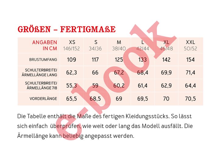 6 Doppelgrößen XS (146/152) bis XXL (50/52)
