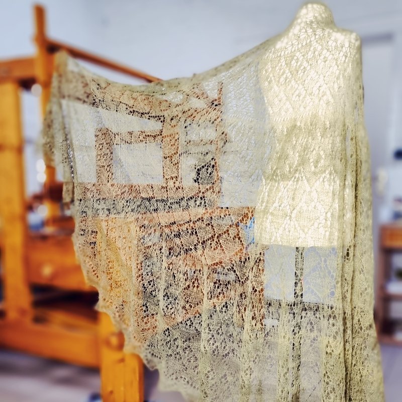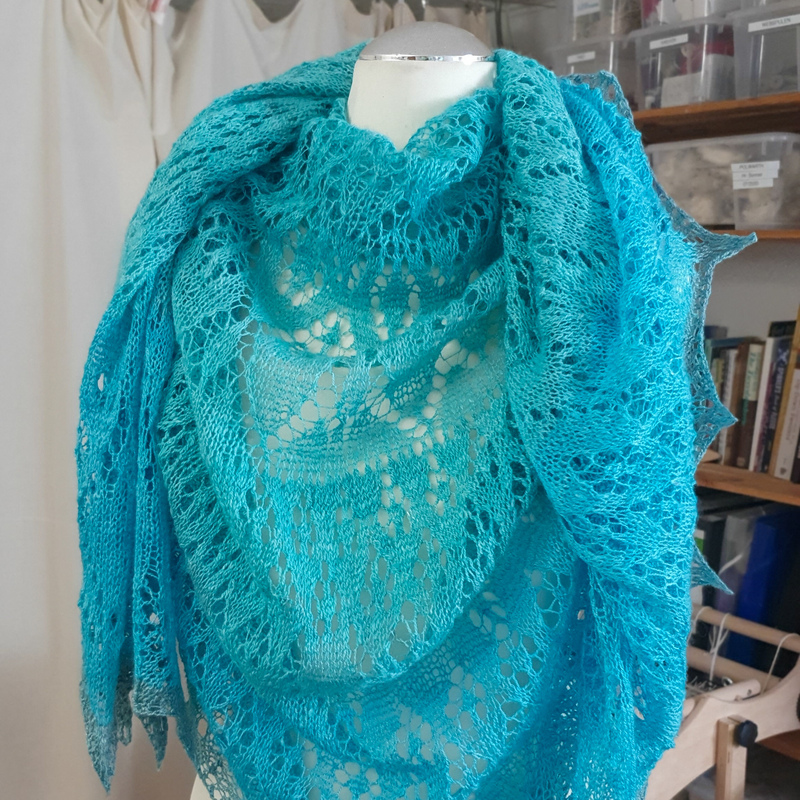 Ich persönlich finde Lacemuster in Unifarben oder Farbverläufen besonders schön. Leicht melierte Garne funktionieren auch sehr gut, während stark melierte bzw. bunte Garne, das Muster häufig unter gehen lassen.