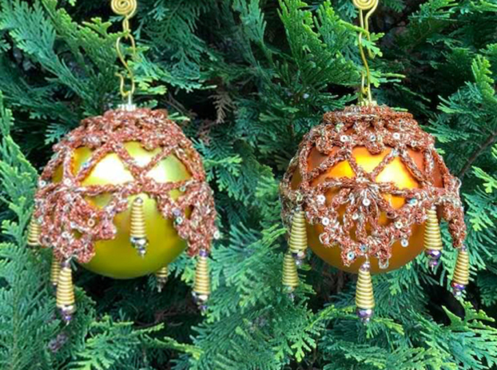 gehäkelt + mit Draht + Perlen....Einfach einfarbige Christbaumkugeln aufpeppen mit Wolle, Aludraht und Perlen...ist das nicht eine festlicher Christbaumkugel-Schmuck?....ein herrliches DIY-Projekt für alle Bastler & Häkelfreunde, die vor etwas Fummelarbeit nicht zurück schrecken...!