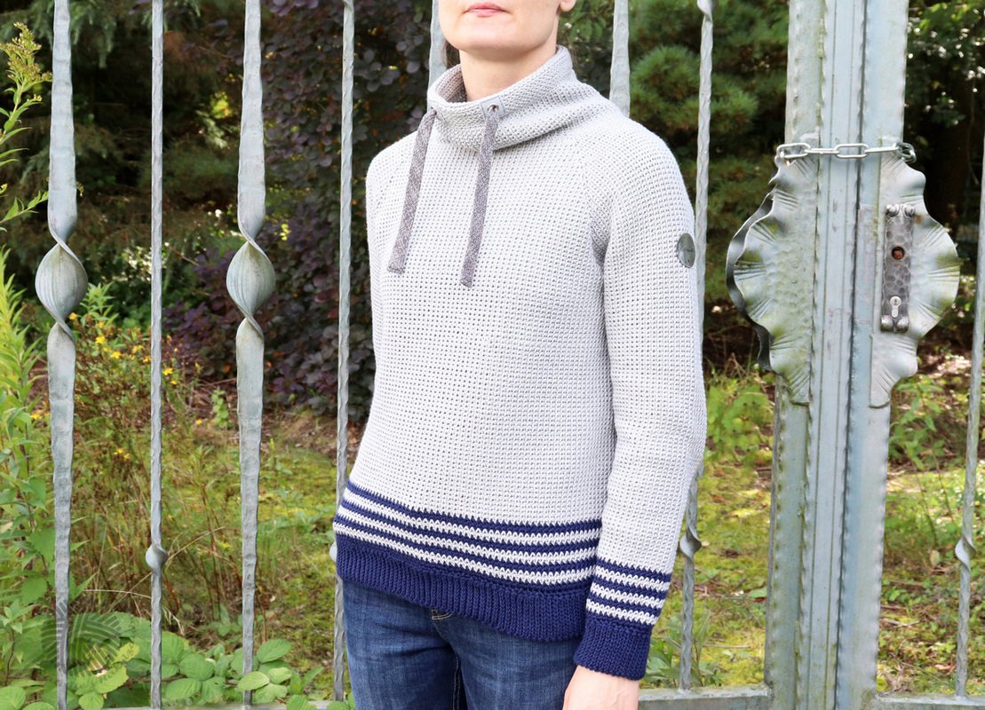 Der Pullover ist sehr gemütlich. Er wird Ihr perfekter Begleiter bei abendlichen Spaziergänge, Bummeln in der Stadt und Pausen auf der Terrasse. Er ist auch perfekt für sportliche Aktivitäten geeignet. Er kann sowohl für Winter, als auch für Sommer gehäkelt werden (abhängig von der Wolle) und ist ein unisex Reglan-Pullover (also für Frauen und Männer geeignet).